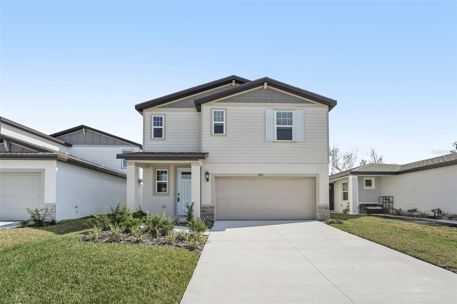 Brand new, energy-efficient home available NOW! This brand new home features a stone accented elevation with an 8ft tall front entry door with glass insert for added curb appeal. Inside, our Crisp design package includes 18x18 ceramic tile flooring in the entire first floor as well as in the baths and laundry room upstairs. Ornamental Whi granite countertops with undermount sinks and whi shaker style cabinetry can be found in the kitchen and full baths. A side-by-side stainless steel fridge, washer/dryer, and 2 in. whi faux wood window blinds are also included making this home truly move-in ready! Less than a mile away from I-4, this community also offers easy access to Lakeland and Tampa. Residents can enjoy the community’s amenities which include a cabana, resort-style pool, sport court, and playground. Each of our homes is built with innovative, energy-efficient features designed to help you enjoy more savings, better health, real comfort and peace of mind.