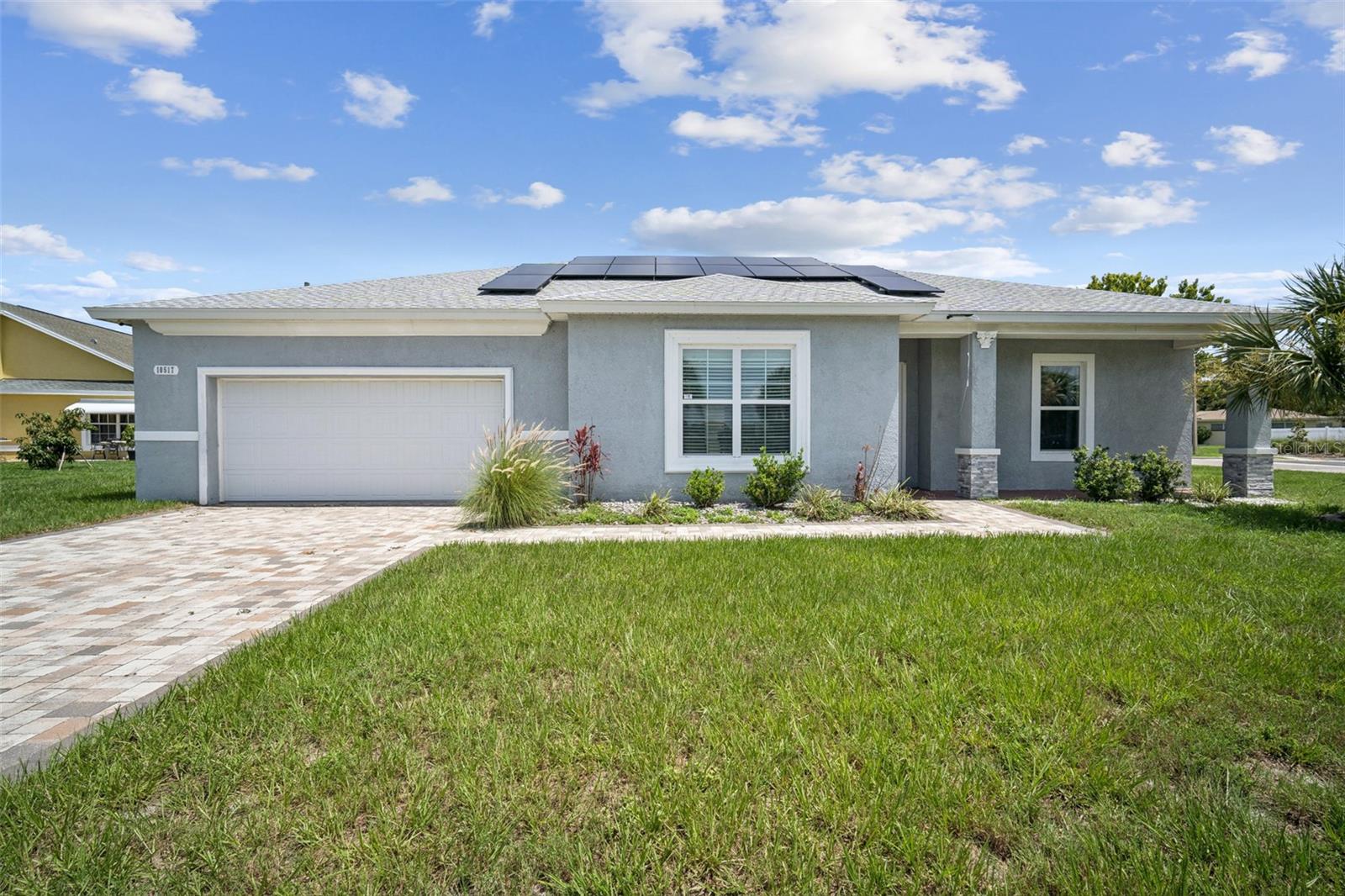 Welcome to your dream home in the charming Jasmine Lakes community! This stunning 4-bedroom, 2-bathroom single-story residence sits on a spacious 0.20-acre corner lot, offering 2,095 sq ft of beautifully appointed living space, ideal for families, entertaining, and Florida living. Key features include an open-concept design that seamlessly connects the living, dining, and kitchen areas, perfect for gatherings and everyday ease. Gourmet kitchen outfitted with stainless steel appliances, granite countertops, and stylish cabinetry. Master suite retreat featuring dual sinks, a separate soaking tub, and a walk-in shower. No HOA or CDD fees equals more savings and freedom. Energy efficiency boost with a solar system installed, reducing utility costs. Low-maintenance ceramic tile floors throughout provide a neutral palette ready for your personal touches. 2-car attached garage and driveway parking for convenience. Fenced-in yard & screened rear porch, ideal for entertaining or enjoying peaceful outdoor time. Additional highlights included, built in 2020 with sturdy block and stucco, a corner-lot location offering more space and charm. Community amenities: sidewalks, water views, no restrictive fees, and convenient access to US-19, linking you to shopping, dining, medical centers, entertainment, Jasmine Lakes Plaza, parks, and essential services within minutes.