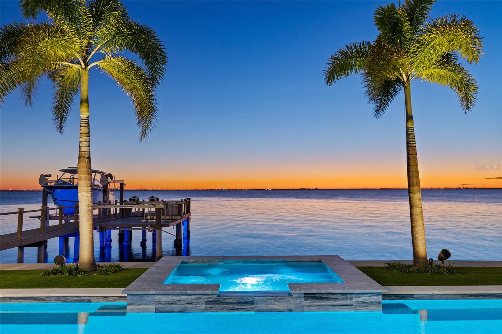 Experience breathtaking sunsets year-round with this open-bay waterfront masterpiece, a rare find built by top custom builder Windstar Homes. Showcasing unparalleled craftsmanship, stunning views, & extraordinary upgrades, this home offers a truly unique living experience. With 110 feet of water frontage, it was originally built in 2012 and thoughtfully updated in 2021, incorporating custom design finishes both inside & out, enhancing the home's beauty and functionality. This meticulously maintained, gated estate home was built with all block construction, hurricane impact windows, elevated breakaway wall system, a new whole-house gas generator, & 2 brand new & 1 newer HVAC systems. As you enter the home, the view of the open bay through the 10-foot-high sliding glass doors is breathless. The open floorplan & tall ceilings allow natural light to flood the space, highlighting the handscraped walnut wood floors & elaborate millwork that add rich, timeless character. Modern lighting, custom window treatments, & a Sonos-operated sound system elevate the home’s luxurious feel. The dining room features a custom-designed wine cellar, crafted from redwood & dark walnut to hold 800 bottles. The great room features a double-sided gas fireplace shared with the dining room & a circular built-in seating area with stunning bay views. This modern kitchen features top-of-the-line Subzero & Wolf appliances, including a double oven, 48†refrigerator, 24†refrigerator drawers, gas stovetop, dual dishwashers, & two workstation sinks. It's the perfect blend of style, functionality, & luxury. The custom walnut & maple cabinetry, paired with sleek Quartz & Porcelain countertops, is accompanied with two expansive islands & a large walk-in pantry. The covered lanai off the kitchen is designed for outdoor entertaining, featuring a fully equipped outdoor kitchen with a gas grill, sink, mini-nugget ice machine, & ample counter space. The covered lanai off the family room is fitted with a motorized shade. A full-size gym featuring professional equipment, a powder bath, an office, along with a bedroom & full pool bath complete the 1st floor. The 2nd floor is composed of the primary suite, 2 bedrooms with en-suite bath, entertainment space, & large laundry room. The primary suite features his & her custom closets. The primary bathroom blends natural stone floors & countertops with large-format porcelain walls with a jetted tub, a separate make-up counter, & a private water closet. Just outside the primary bedroom, a private covered lanai offers stunning views of the Bay. The other bedrooms have views of the Bay & access to a shared covered terrace. The top floor offers versatile space with a powder bath, built-in cabinetry, & an undercounter refrigerator/freezer with breathtaking views of the water from its private lanai. The backyard outdoor space is a true oasis, featuring elegant marble pool decking, multiple gathering areas, a concrete gas firepit & a designer saltwater pool & spa. The area is beautifully complemented by artificial turf with integrated outdoor lighting & speakers, creating the perfect atmosphere for relaxation & entertainment. The private dock includes a 16,000 lb. high-speed lift & a 4,500 lb. platform lift for small watercraft. The seawall was updated in 2021. The front drives are secured with electronic gates, leading to oversized split garages with custom cabinets & 13’ high ceilings providing room for car lifts.