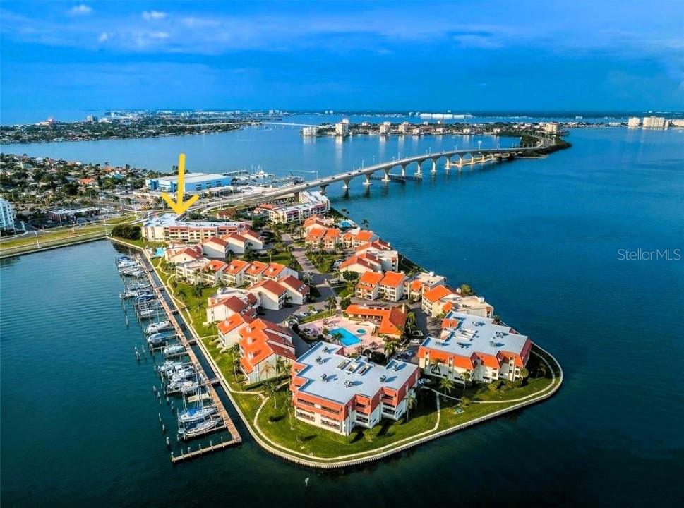 Exclusive Staffed Gated Waterfront Complex with Elevator and Covered Parking! Choice of 3 scenic heated-cooled pools with spas and grills, 3 lighted tennis courts, fitness center, sauna, fishing docks, boardwalk, clubhouse. Walk or bike to restaurants, marina, boat rentals, parks, beaches, stores on Pinellas Trail. On site Marina regularly has boat slips for rent or purchase; pet and motorcycle friendly. This freshly renovated 2/2 condominium provides 1 floor living with easy-care polished concrete floors, custom maple soft-close hardwood and granite cabinets, reserved under building covered parking for auto, water toys & bikes. Individual 12 foot secure storage unit, neutral colors, walk in closet and split bedroom floor plan. Fully funded HOA reserves, state mandated inspections complete, no pending or contemplated assessments. New roof in 2021, HVAC system in 2019, 40 gal water heater in 2022. Recent floors, storm shutters, interior doors, drywall, popcorn ceiling removal, ducts, cabinets, plumbing fixtures, upgraded breaker box, re-wiring, new electrical outlets with safety features, fans, and light fixtures. A thorough inspection and reserve study was completed and approved in 2022. Fully funded reserves provide security that community contributions will stay stable well into the future. HOA covers a full time onsite property manager, 24 hr secure manned guard gate, cable, wifi, hi-speed internet, grounds maintenance, water, sewer, trash collection, and all amenities. Assigned under-building parking space with shopping carts, bicycle parking, and individual storage room with lights and electric. Minutes to historic Ft. DeSoto's splendid beaches, Pass-a-Grille, St. Pete Beach, 10 mins to downtown St. Petersburg; easy access via I-275 to Tampa, Bradenton and Sarasota.