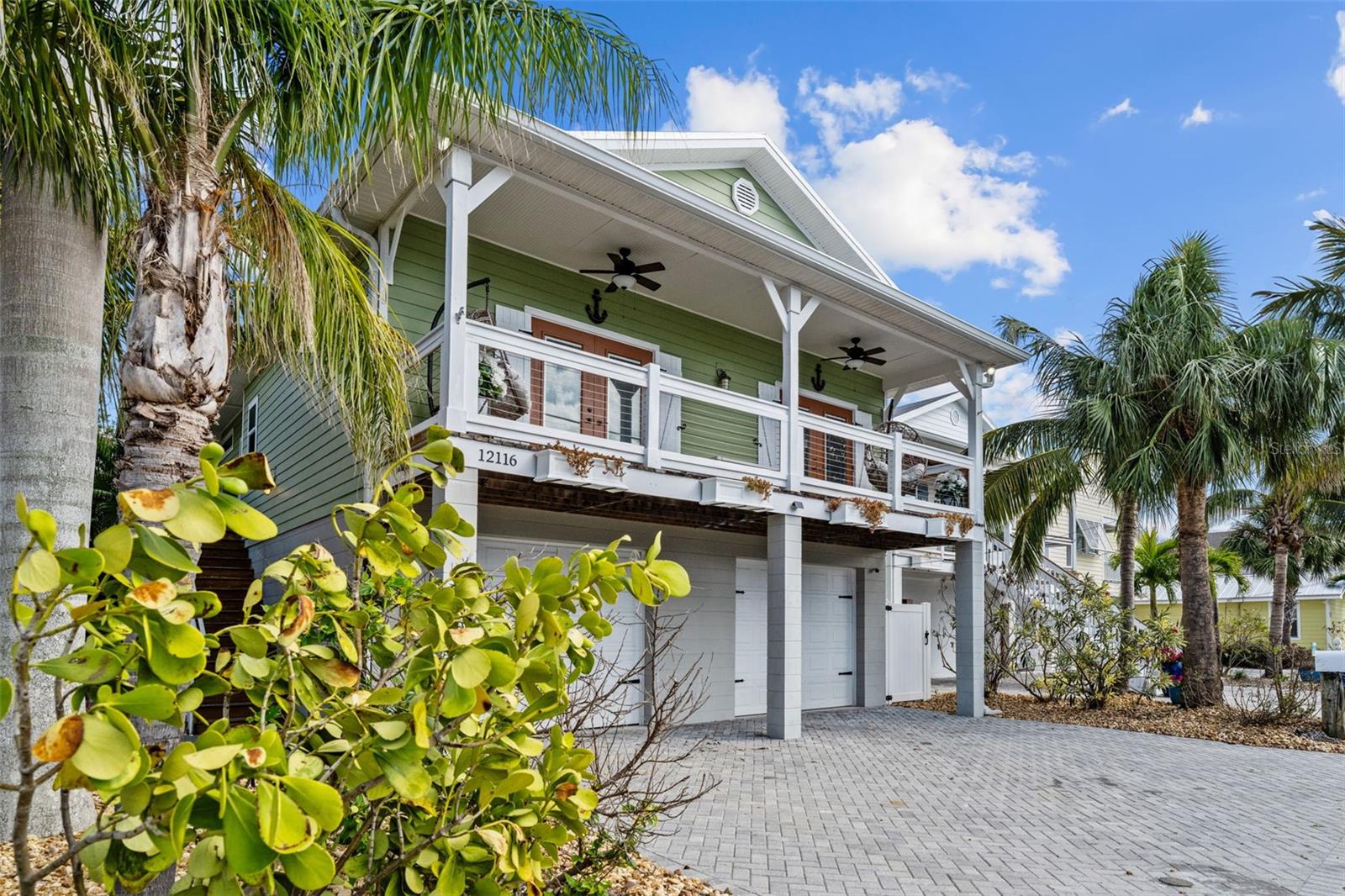 This Coastal Home is a boater's dream in a protected Lagoon on the Intracoastal Waterway with direct access to the Gulf of Mexico. The Key West Style home is wrapped in porches, capturing salty breezes for an endless vacation vibe. This waterfront beach house is found on a corner lot with both sunrise and sunset views. An open floor plan includes a living room with built in shelving for media, entertainment and personal treasures. The dining area provides a large gathering space while the kitchen has a center island with breakfast bar, open shelving for glassware, a wine nook, and a large pantry for storing dry goods and small appliances. Sand colored granite countertops float above white shaker cabinets with abundant prep and storage space. Take indoor living outside through sliding doors to the covered waterfront living area. All on one living level, the Primary Suite has French doors to the westward porches to delight in sunset skies and nightcaps. The ensuite bath has been updated with large vanity and a gorgeous, tiled steam shower. No need to share a closet, you can each have your very own! The second bedroom also has French doors to the sunset porch to let in the natural light. The third bedroom offers flexibility for residents, guests or a home office. This Custom home has gorgeous eucalyptus flooring and 9’ ceilings throughout, 6” crown moldings, thoughtful built-in features, designer hardware and fixtures – this is a truly special home. While the living area has ample storage space, there is also a large garage with room for several vehicles, golf carts, bicycles, beach toys and fitness area. Take your kayaks and paddleboards right out the back door. The waterfront has a deep-water dock with power, water and even an outdoor shower. Sailboat water, in a no wake zone, has direct access to the Gulf of Mexico via John’s Pass. The back yard oasis has a covered lanai for BBQ and al fresco dining or chilling out in the shade. Tropical palms and bamboo surround the space for privacy, leaving room for a pool. Beach access is just two blocks away with a crosswalk at Gulf Boulevard and 123rd Avenue. Custom built in 2016 at 14’ above sea level, this home is a fortress, exceeding FEMA requirements with impact glass windows and doors, metal roof, and reinforced engineering. This home is offered fully furnished, Move-in Ready with Motivated Sellers!