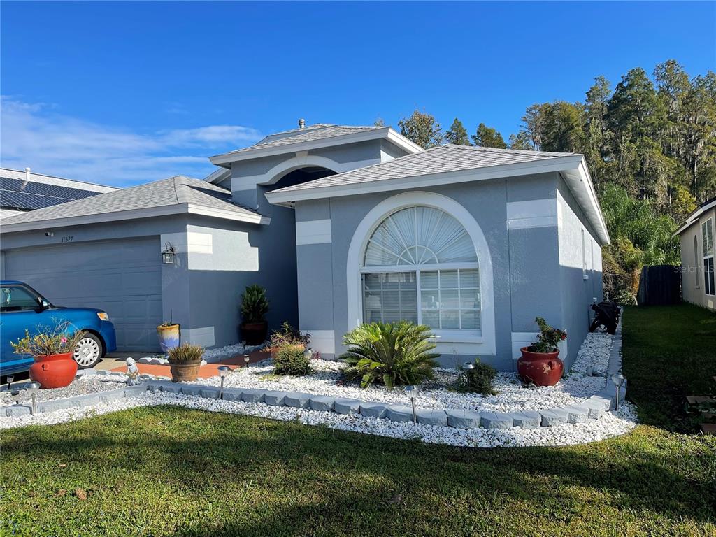 New roof was installed last year! Welcome home! This bright 4-bedroom, 2-bath home is located in the highly desired and established community of Meadow Pointe in Wesley Chapel. The most beautiful feature of the house is the peace and tranquility of sitting outside and enjoying the nature preserve. The open floor plan makes this house even more welcoming. There is an Eat-in–Kitchen, granite countertops, a separate dining area, a stainless steel refrigerator and a gas cooking range. The master bedroom features a walk-in closet while the BRAND NEW Master bathroom features dual vanities, a new tub and a walk-in shower. There are large tiles throughout the bathroom. In 2021, the A/C unit was replaced and a BRAND NEW roof was installed. Solid concrete patio slab great for barbeques, you can relax with your favorite drink and enjoy the great view ! This home is optimally located close to Wiregrass Mall, the Premium Outlet Mall, new medical facilities, top rated schools and much more!