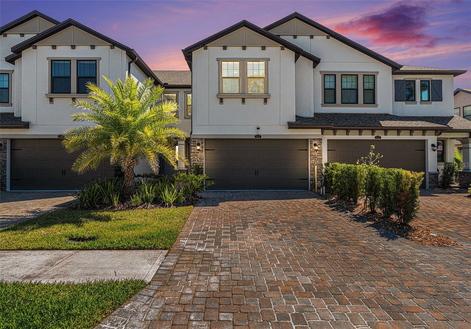 One or more photo(s) has been virtually staged. Prepare to be impressed! This stunning 3 bedroom, 2.5 bath townhouse located in the sought after community of Estancia at Wiregrass is ready for a new owner. Prepare meals in the modern kitchen featuring quartz counter tops, soft close cabinets with dovetailed drawers, under cabinet lighting and high end GE appliances including a GAS stove. Beautiful custom designed built-ins provide versatility for decorating in the living room. Tile plank flooring flows throughout the 1st floor adding both style and durability. The spacious primary suite boasts a tray ceiling and a custom walk in closet. Upstairs, a loft provides extra space for your personal needs. The two car garage has epoxy flooring and a large storage closet. Enjoy outdoor living on the extended paved lanai with screen enclosure. Additional features include a whole-home water treatment system with reverse osmosis in the kitchen and Rinnai instant hot water.
